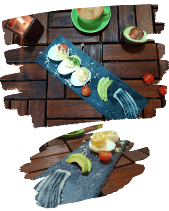 DESAYUNO 1: Huevos Duros rellenos de Atún, Aguacate y Queso.