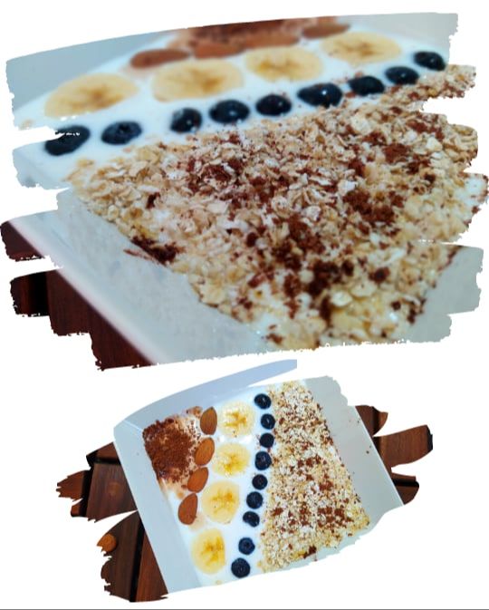 DESAYUNO 2: Avena con Yogur/Kéfir, Almendras, Arándanos y Plátano.