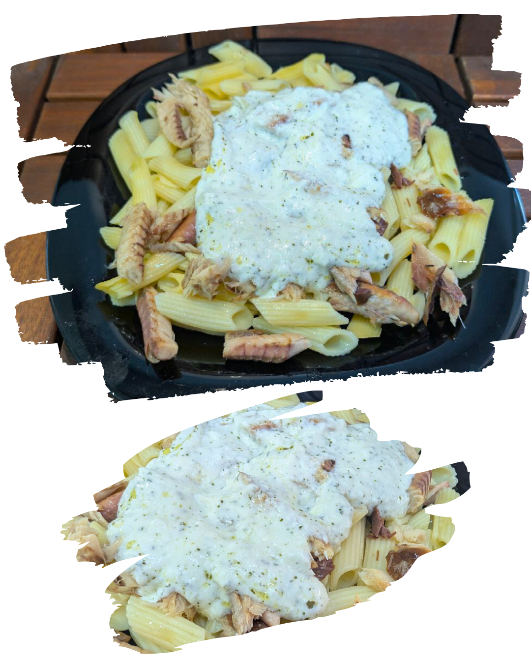 COMIDA 2: Pasta con Atún ó Gambas y Salsa de Yogur.
